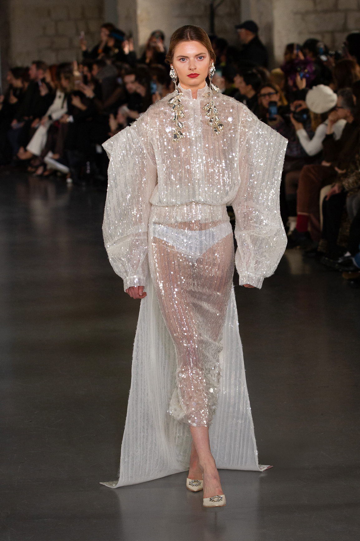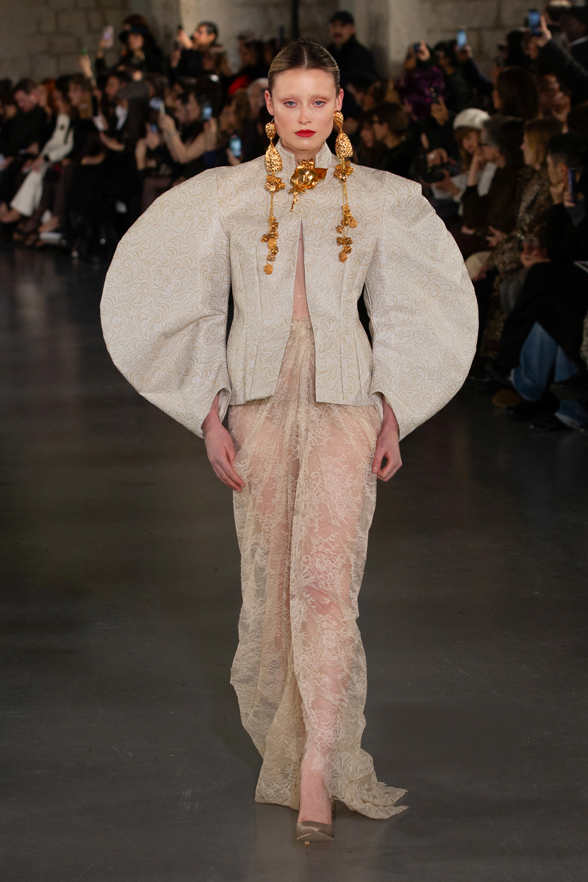 Chaque silhouette semble sortie d’un rêve. Broderies minutieuses, dentelles sculptées, volumes théâtraux et coupes architecturales se