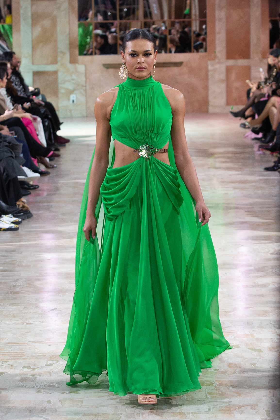 Les matières nobles prennent vie dans un mouvement perpétuel, porté par des mains expertes et un savoir-faire d’exception. Plus qu’un simple défilé,