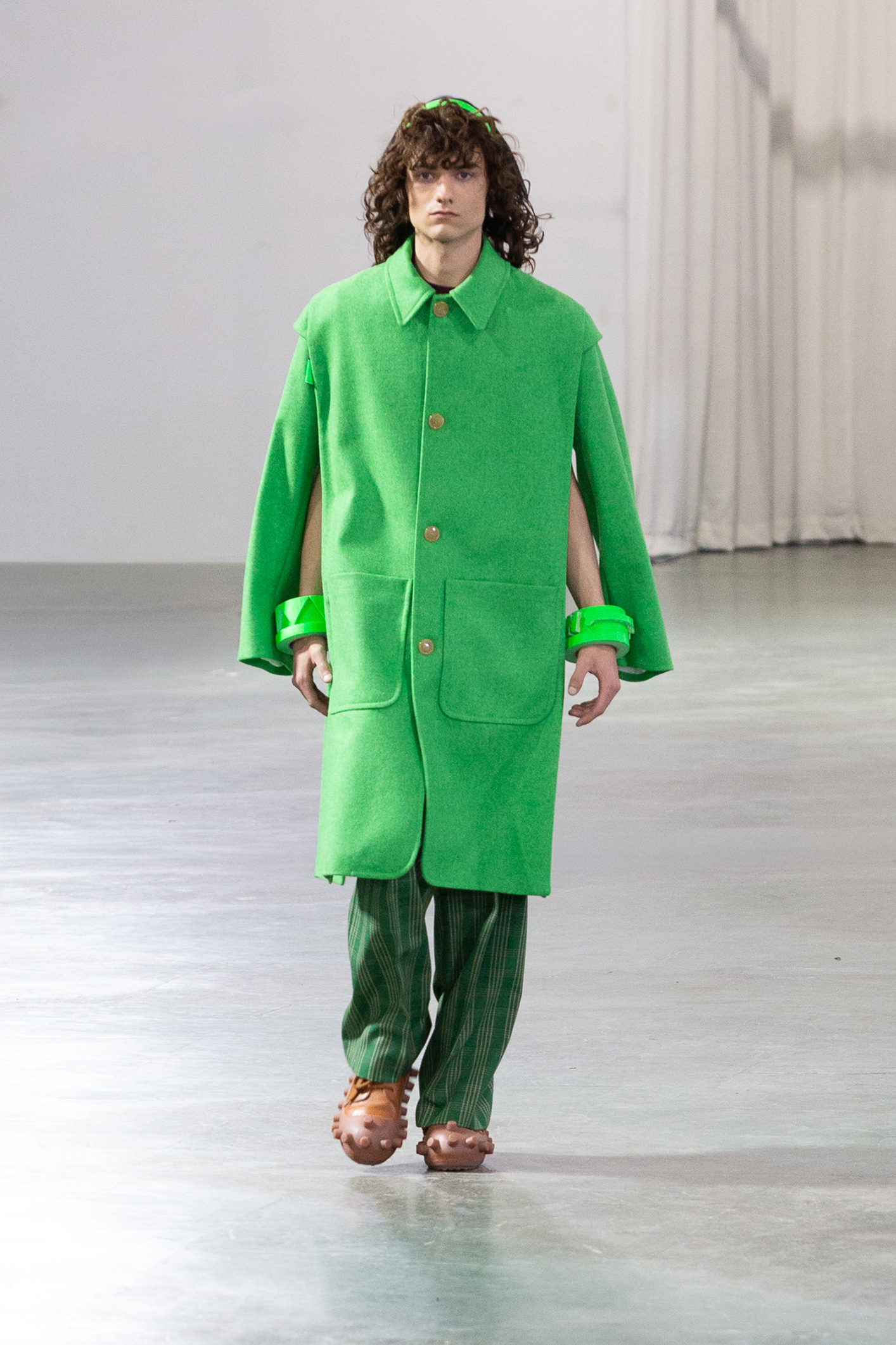 mais aussi un ensemble masculin composé d’une veste et d’un pantalon vert singulier,